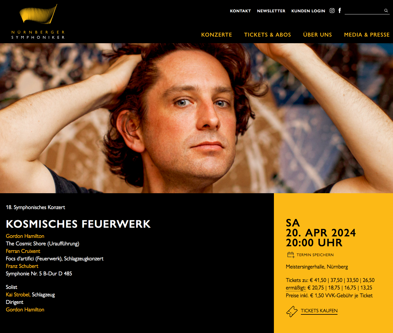 Nürnberg (Germany): "Focs d'artifici", concerto for percussion and orchestra.