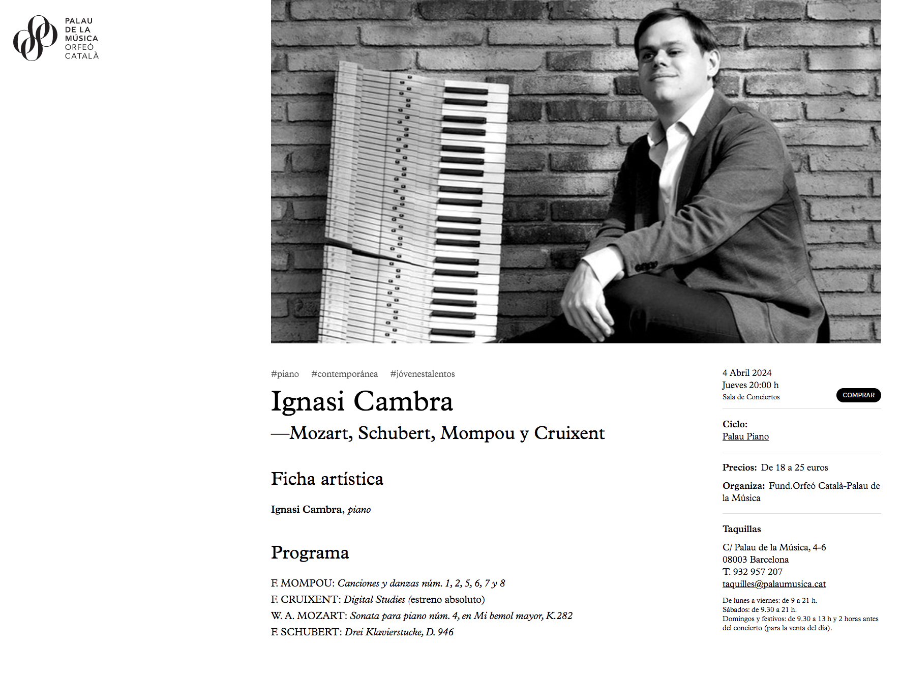 Fundació Joan Miró, Barcelona: Ferran Cruixent és seleccionat pel programa "Músiques d’avui", temporada 2008/2009.